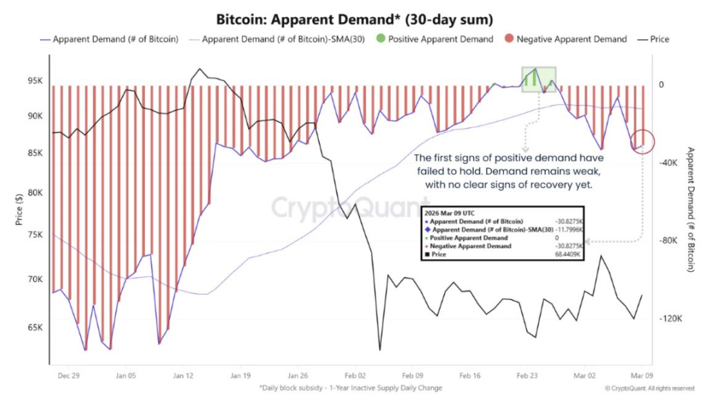 Bitcoin apparent demand. Source: CryptoQuant