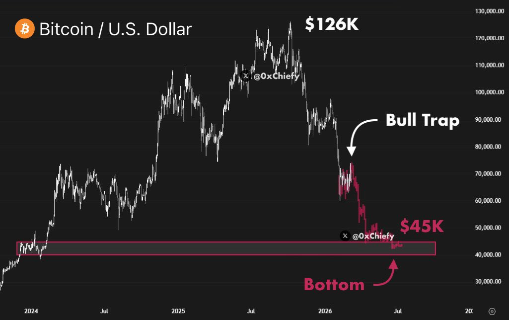 From a technical analysis standpoint, BTC price could be very close to its near market bottom after getting trapped in a falling trend in the past few months, according to trading expert 0xChiefy on X.