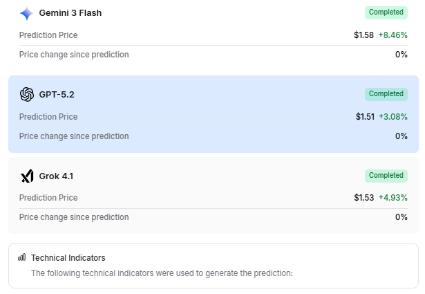 Grok set the price at $1.53, believing the digital currency would go up 4.93%.