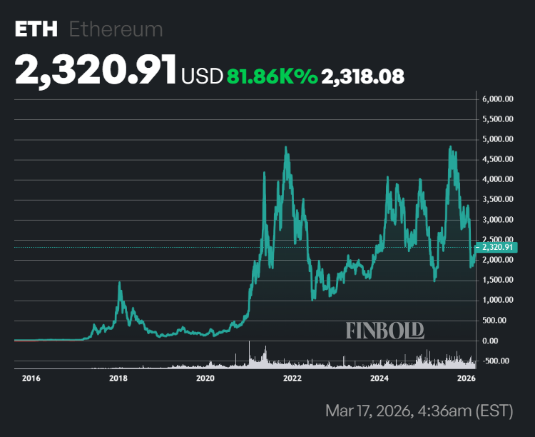 Robert Kiyosaki’s prediction for Ethereum, however, might be the most staggering of the four, considering the forecasted ETH will be changing hands at $95,000: 3994.83% above the March 17 price of $2,320 and 1818.03% higher than the 2025 ATH at $4,953.